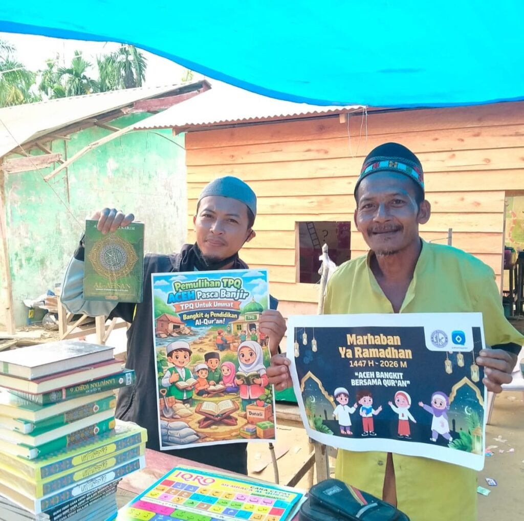 Aceh Timur – Semangat kebangkitan terus digaungkan melalui program “Aceh Bangkit dengan Qur’an” dalam rangka menyambut bulan suci Ramadhan 1447 H. Pada Sabtu, 21 Februari 2026, telah dilaksanakan penyaluran mushaf Al-Qur’an, buku Iqro, serta perlengkapan TPQ untuk TPQ yang dibina oleh Bapak Hasan di Desa Batu Sumbang, Kecamatan Simpang Jernih, Kabupaten Aceh Timur.
