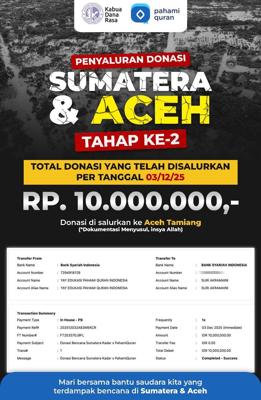 5. Rp10.000.000 ke Bener Meriah, Aceh melalui Riza Mustikan (Relawan PahamiQuran)
