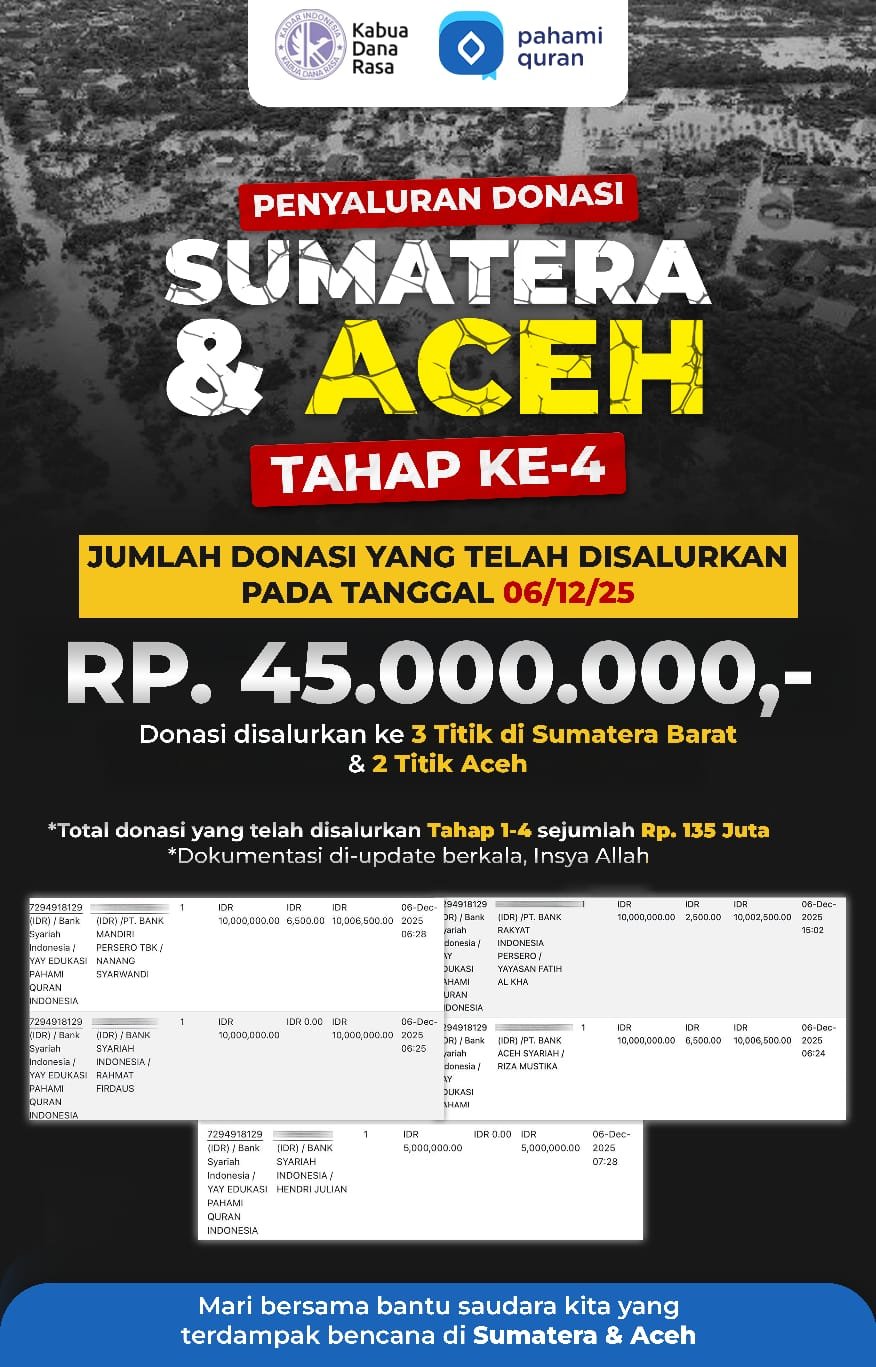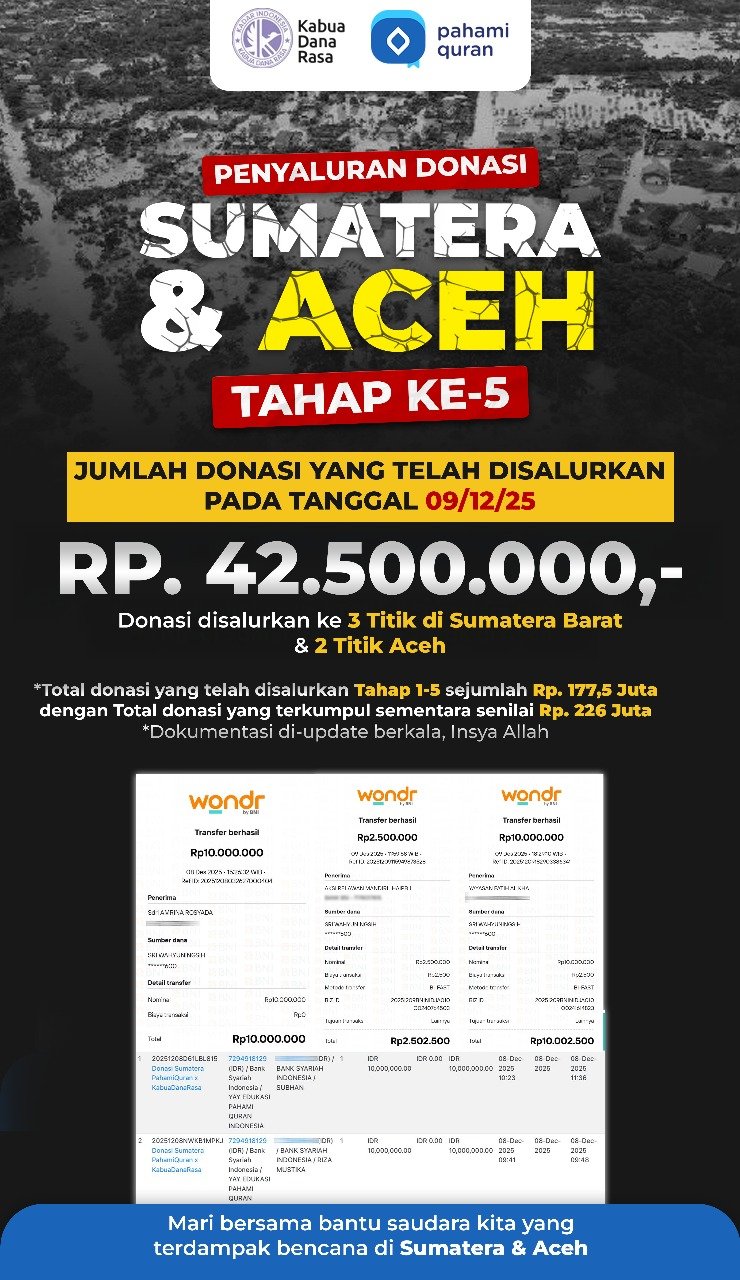 Donasi yang telah disalurkan di tahap 1-5: Rp177.500.000 dari total donasi terkumpul hampir 226juta (perolehan donasi terus berjalan)