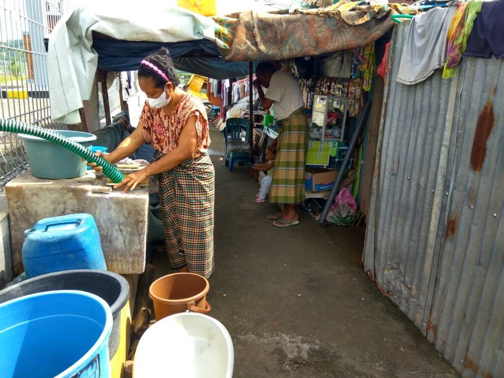 \”Air bersih ini cuma kita buat minum dan bikin masakan saja, kalau untuk mandi cuma untuk bilasan terakhir saja\”, cerita salah satu warga.